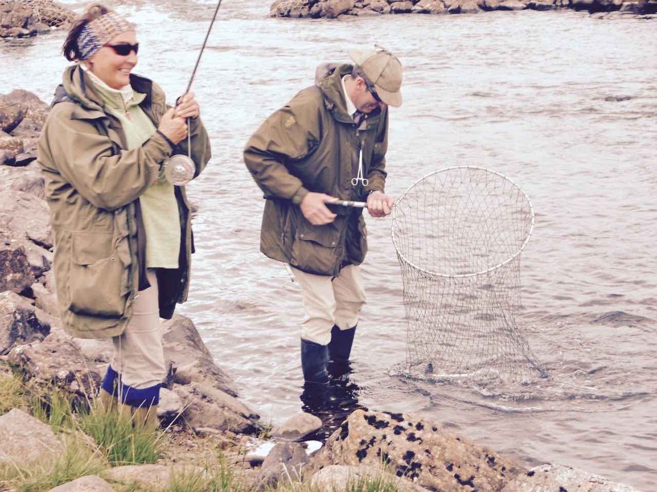 Head Ghillie Jason Laing returning Nick Liddle's 6lb hen grilse to the Sea Pool (Blue Elver)